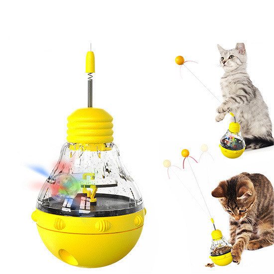 Dispensador de golosinas para gatos juguetones Fuego de alimentos bombilla rotativa Flash Tumbler